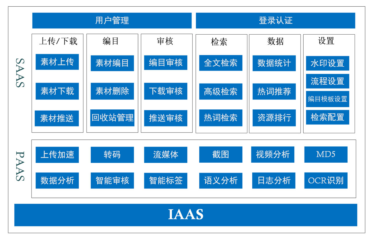智能云媒资服务采用先进的云计算、大数据、人工智能等技术,为用户提供了一套实现媒体资料的入库、编目、检索、存储、管理、发布于一体的全新的智能云媒体管理平台。通过规范的存储格式,智能的审核、编目技术,灵活自定义的编目模板、强大的搜索引擎技术以及云计算的高效计算能力,实现了对媒体资料的集中管理和高效利用。